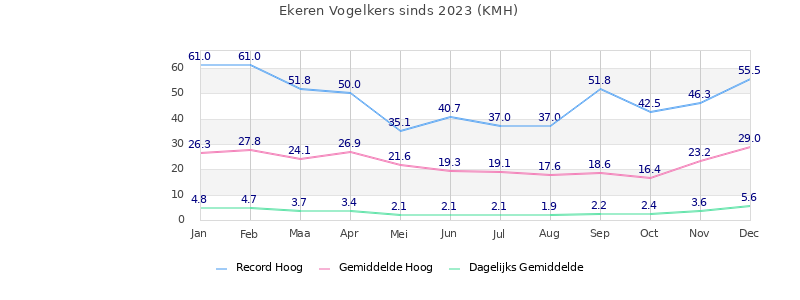 | Gemiddelde Maximum Windsnelheid (kmh) | |||||||||||||